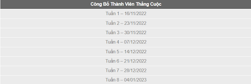 3. Thành Viên Thắng Cuộc sẽ được công bố như bảng dưới:
