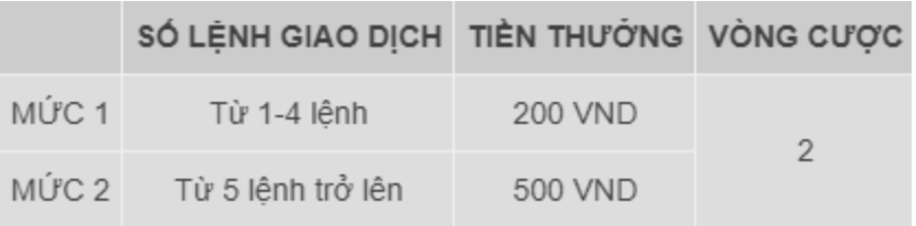 - Trong thời gian diễn ra khuyến mãi, dựa vào tổng số lệnh giao dịch thành công qua Crypto mỗi ngày, thành viên sẽ có cơ hội nhận thưởng như sau: