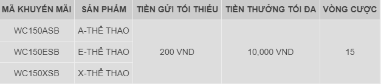 Nhận 150% tiền thưởng khuyến mãi = 150% x 200 = 300 VND